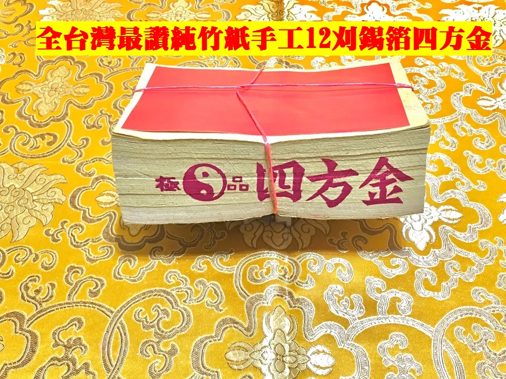 元寶山紙品~四方金12刈正純錫箔、純竹紙張張大錫箔、又稱貴人金意即四方貴人、北部拜地基主專用(一只約100張48元)