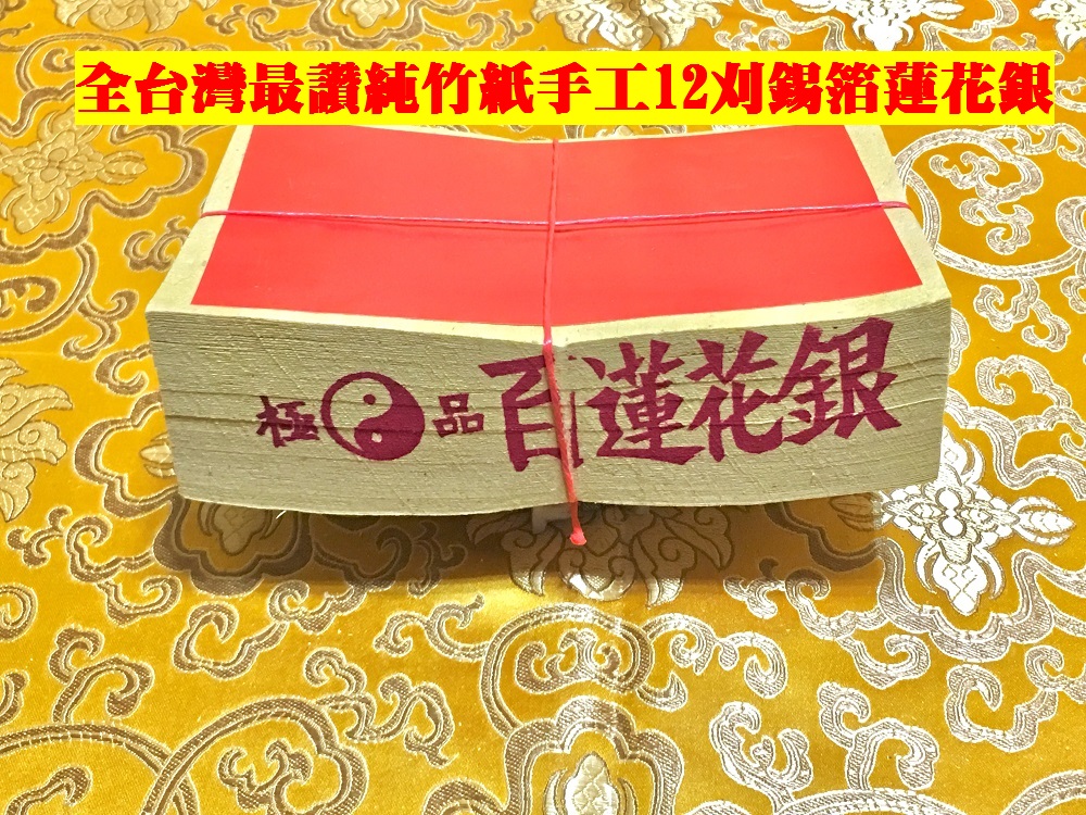 元寶山紙品~蓮花銀12刈正純錫箔百足、純竹紙、又稱兒子銀、祭祖、作忌都可以用、張張錫箔一樣大、(一只約100張48元)