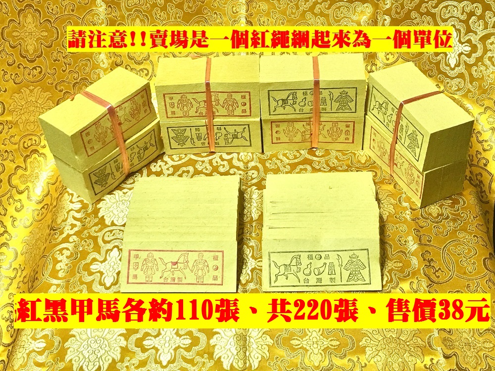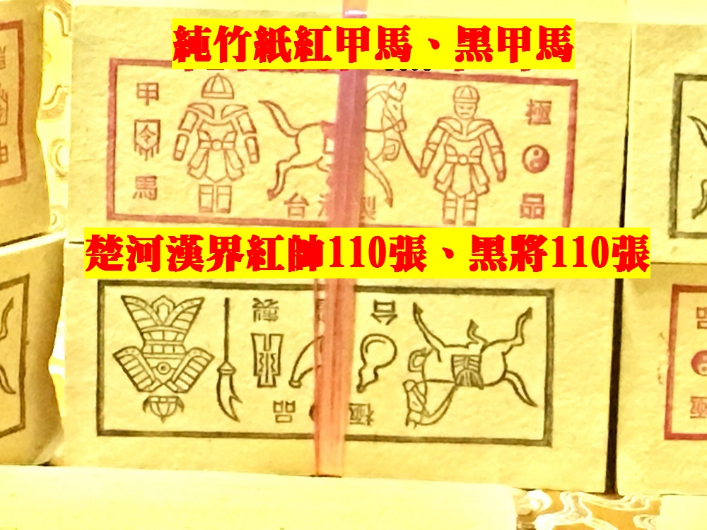 元寶山紙品~紅黑甲馬純竹紙現代版、犒賞兵將、楚河漢界、紅帥與黑將、紅黑是一套武器裝甲號角馬、一刀約200張(一刀42元)