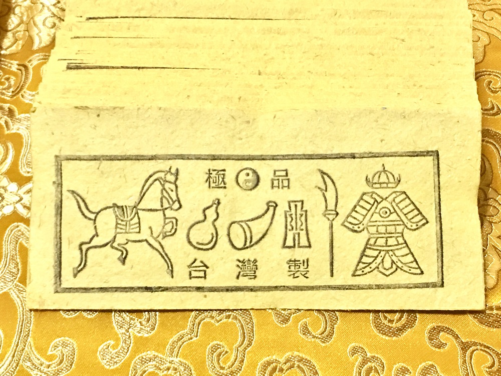 在坊間稱為甲馬、有燙金、有稻草、有印刷、有回收紙作的、真正用純竹紙去製作是很少、都堅持用純竹紙製作、燒了不會亂飛
