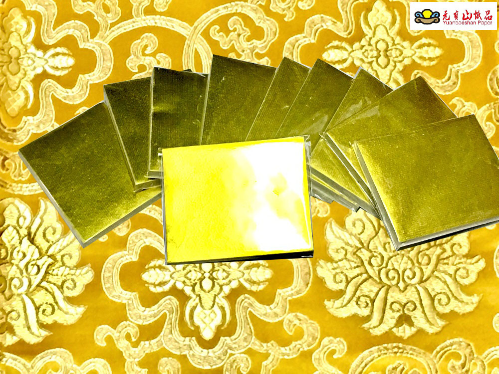 不是一般鋁粉加工印製而成、每一張品質皆接近相同、因為目前都是外國製造、生產所以品質依照MIT的要求、要求要完美、這也是目前市面上的相同產品無法相比的地方、買回家以後你也可以直接最原始的用途摺成元寶、金銀條、或是保持金箔紙張的完整、直接拜拜拿去燒、每一小疊約100張、有時都會難免有相黏、張張都很精美、元寶山紙品賣的就是會很清楚跟你說、不會欺瞞、混充、本來我們是不賣這種的正錫箔上海金紙、正錫箔寧紹銀紙、無奈因客人的拜託、才在去年一直在跟外國廠商了解、引進、一分錢一分貨、要是你也很堅持拜神敬佛的心、請你一定要買正錫箔上海金紙、正錫箔寧紹銀紙。