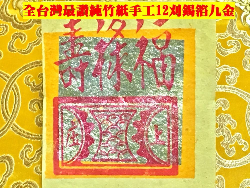 元寶山紙品~福祿壽百九金12刈正純錫箔、純竹紙、張張大錫箔、張張精美、堪稱現代最好的金紙(一只約100張48元)