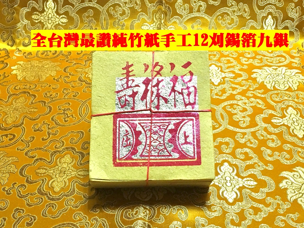 元寶山紙品~福祿壽百九銀12刈正純錫箔、純竹紙、張張錫箔一樣大、張張精美、堪稱現代最好的金紙(一只約100張48元)
